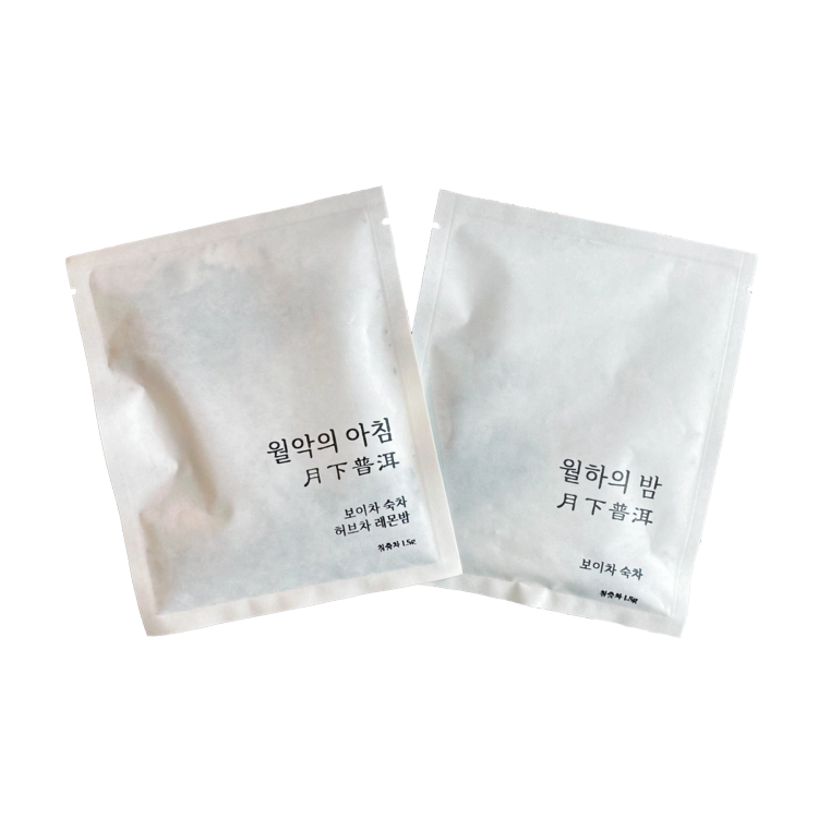 객실에서 맛보실 수 있는 월하보이의 보이차 블랜딩, 월악의 아침과 월하의 밤 시리즈 입니다.